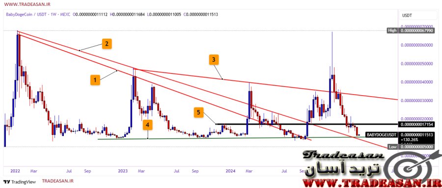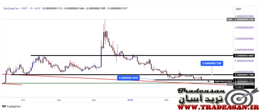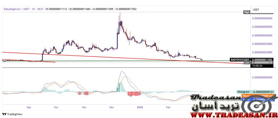 لذا وضعیت فعلی در بی بی دوج میتواند همچنان ادامه داشته باشد به طوریکه به پایین 0.0000000010000 دلار نیز مجددا ریزش نماید . با اینکه دو ناحیه حمایتی کف کانال و کف مثلث درون کانال، و نقاطی که در بالا به عنوان نقاط حمایتی معرفی شده اند، میتوانند بر روند ریزشی قیمت تاثیر گذار باشند ولی نمیتوانند برای همیشه جلوی ریزش قیمت را بگیرند. پس تا زمانی که یک پامپ پرقدرت بر بی بی دوج وارد نشود ( بر اساس فاندمنتال ) نمیتوان امیدواری چندانی برای بی بی دوج کوین در نظر داشت. توصیه ای به خرید یا فروش نداریم ولی میتوانید همه روزه نگاهی بر چارت داشته باشید و قیمت را زیر نظر بگیرید و با مشاهده شکست سقف مثلث، به دنبال نقاطی برای خرید باشید.