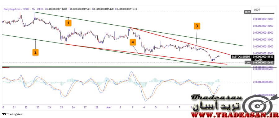 بر این اساس باید منتظر خروج قیمت از مثلث باشیم. تا آن زمان نمیتوان خرید و فروشی را بر روی بی بی دوج کوین پیشنهاد نمود.