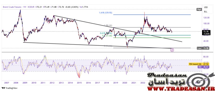 📊 تحلیل برنت بر اساس چارت هفتگی: